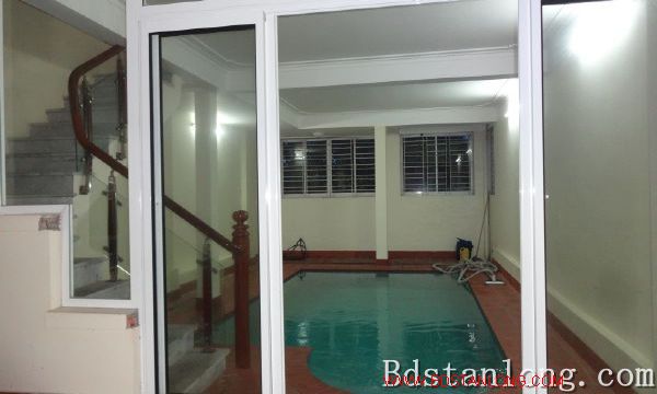 Villa with swimming pool for rent in Tay Ho Hanoi. The land area is 250 sq m. The construction area is 150 sq m x 3,5 floors, designed with 3 bedrooms, 3 bathrooms, living room and kitchen. It has small swimming pool, front- yard, back- yard, large terrace where you can organize party. It was partial...